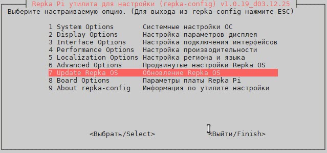 Для обновления Repka OS используйте программу repka-config (рис. 1).