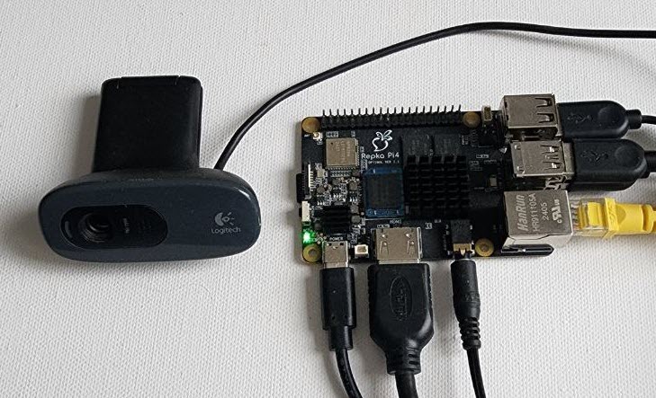 Качество распознавания речи очень сильно зависит от микрофона и его настроек. Я использовал микрофон, встроенный в Web-камеру Logitech, подключенную к разъёму USB микрокомпьютера Repka-Pi (рис. 2).