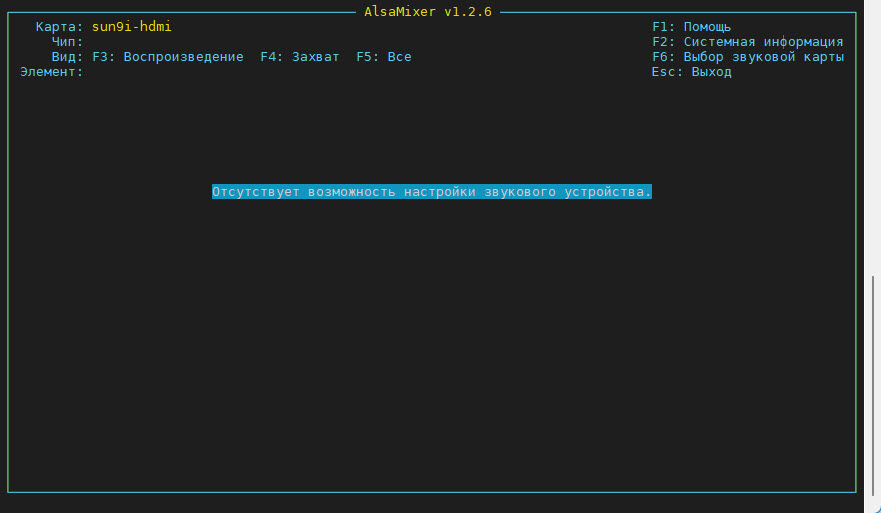 Рис. 3. Первый запуск alsamixer.