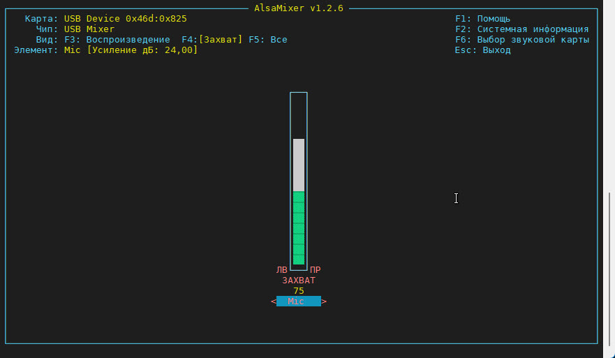 Если качество записи с микрофона невысокое, запустите программу alsamixer для настройки уровней записи и воспроизведения.