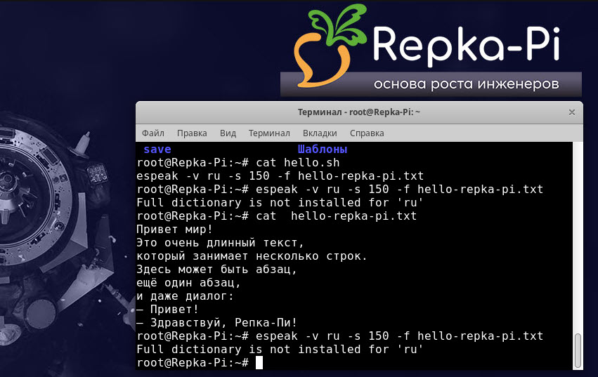 espeak-ng -v ru -s 150 -f hello-repka-pi.txt