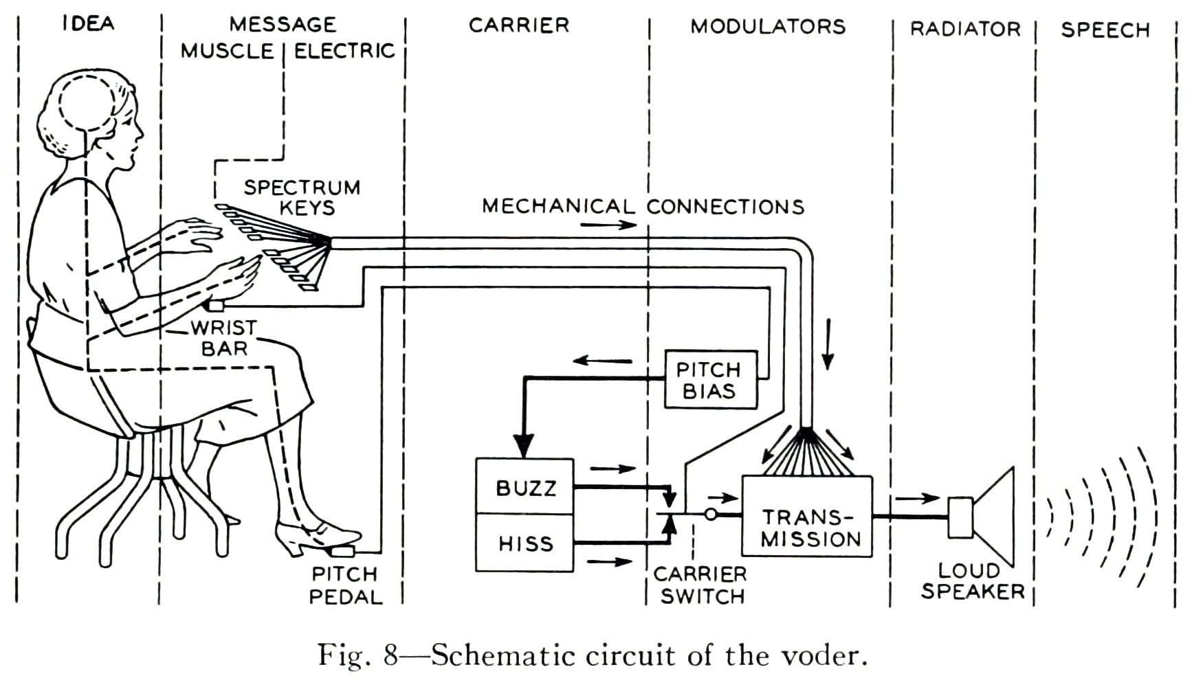 Для синтеза речи здесь использовались клавиши, педаль, генераторы тона и шума, а также фильтры.