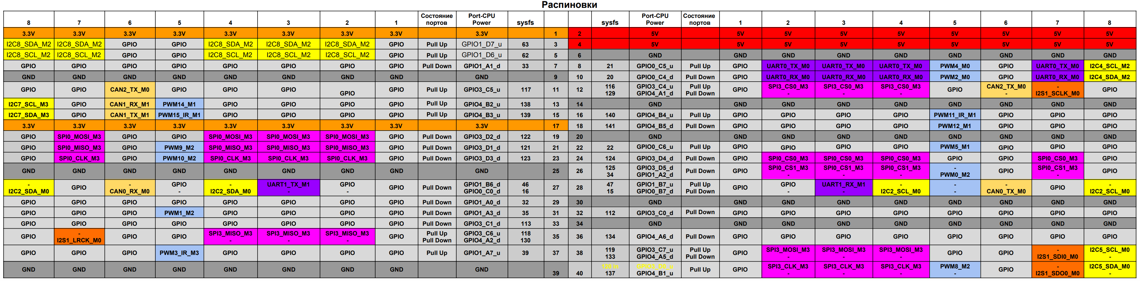 Распиновки портов на 40-pin разъеме #
